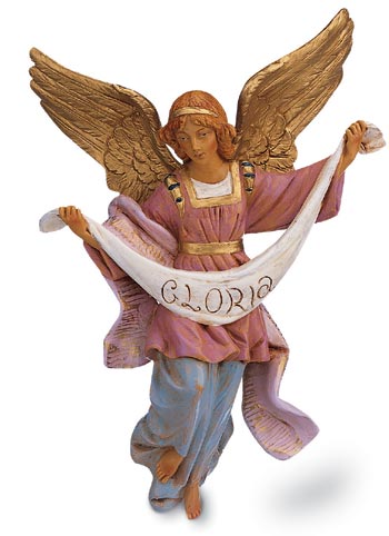 Gloria Angel for 12" Fontanini Nativity. Made in Italy, these magnificent sculptures beautifully capture the joy and majesty of this sacred time of year. Made of a durable polymer, these pieces will withstand years of enjoyment and use.