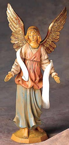Standing Angel for 12" Fontanini Nativity. Made in Italy, these magnificent sculptures beautifully capture the joy and majesty of this sacred time of year. Made of a durable polymer, these pieces will withstand years of enjoyment and use.