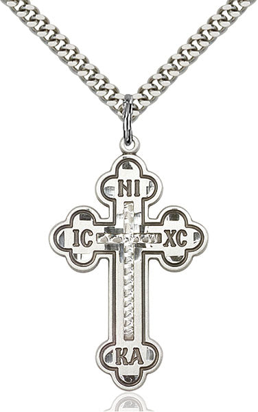 - Sterling Silver Cross Pendant, Stainless Silver Heavy Curb Chain