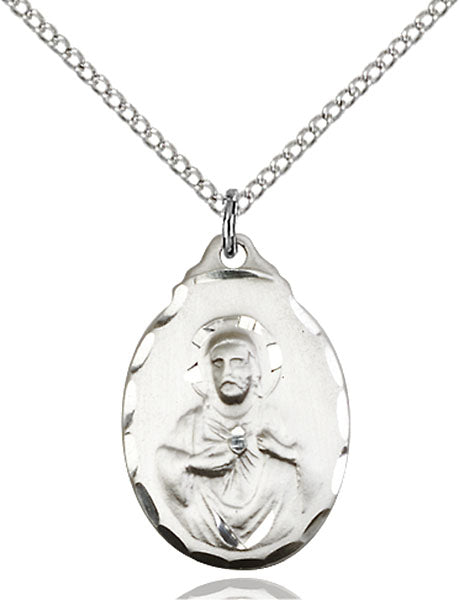 - Sterling Silver Scapular Pendant, Sterling Silver Lite Curb Chain