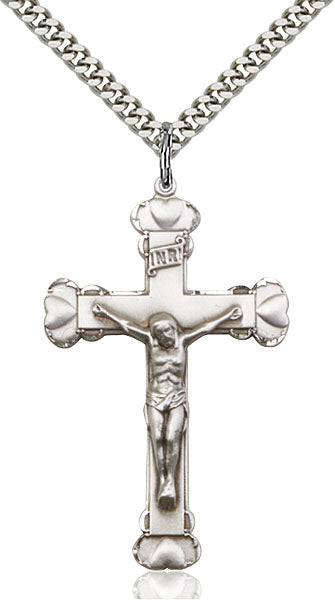 • Sterling Silver Crucifix Pendant, Stainless Silver Heavy Curb Chain