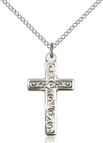 • Sterling Silver Cross Pendant, 18 inch Sterling Silver Curb Chain