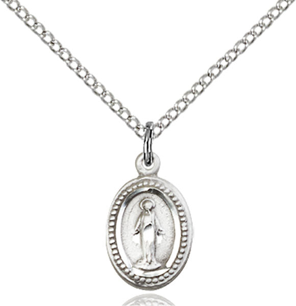 - Sterling Silver Miraculous Pendant, Sterling Silver Lite Curb Chain