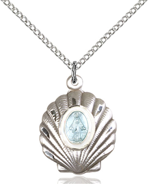 - Sterling Silver Miraculous Pendant, Sterling Silver Lite Curb Chain