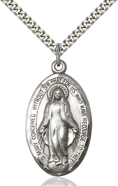 • Sterling Silver Miraculous Pendant, Stainless Silver Heavy Curb Chain