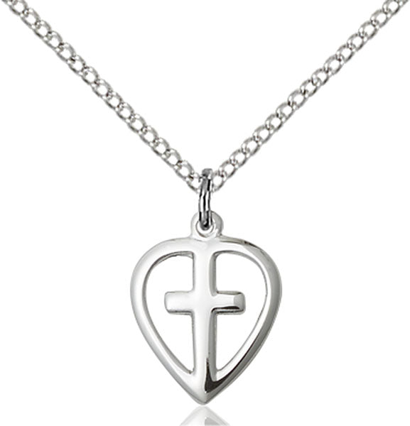 - Sterling Silver Heart / Cross Pendant, Sterling Silver Lite Curb Chain
