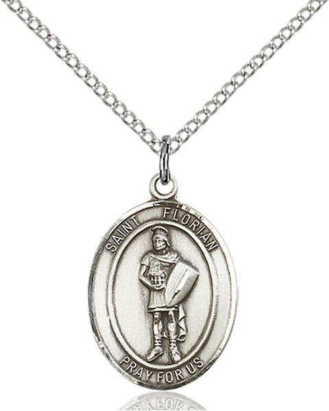 - Sterling Silver St. Florian Pendant, Sterling Silver Lite Curb Chain