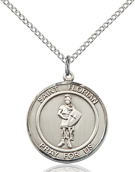- Sterling Silver St. Florian Pendant, 18 inch Sterling Silver Curb Chain