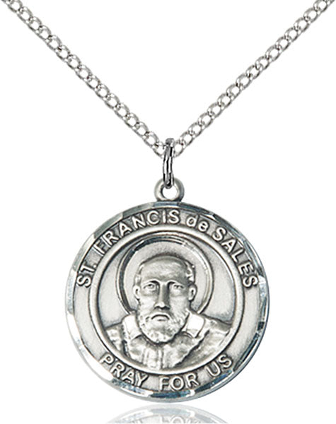 - Sterling Silver St. Francis de Sales Pendant, 18 inch Sterling Silver Curb Chain