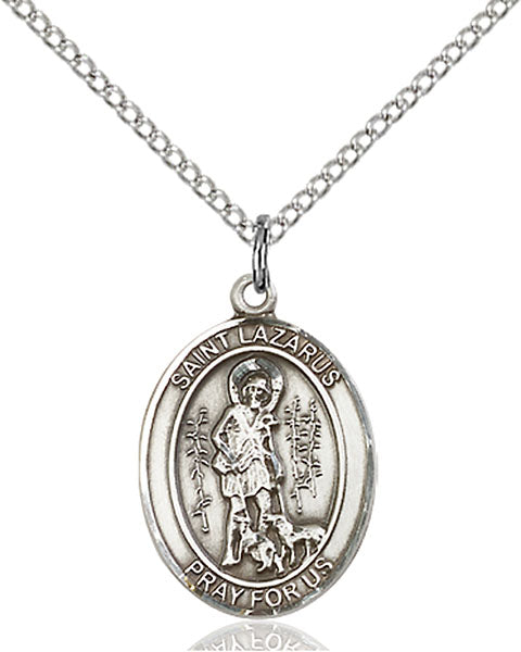 - Sterling Silver St. Lazarus Pendant, Sterling Silver Lite Curb Chain