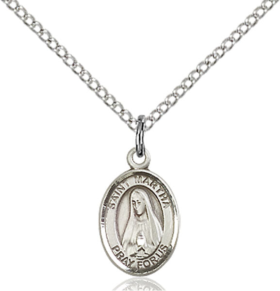 - Sterling Silver St. Martha Pendant, Sterling Silver Lite Curb Chain