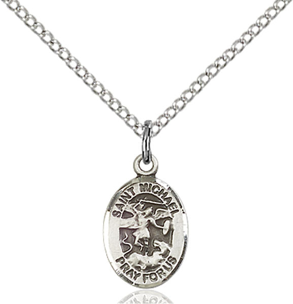 • Sterling Silver St. Michael the Archangel Pendant, Sterling Silver Lite Curb Chain