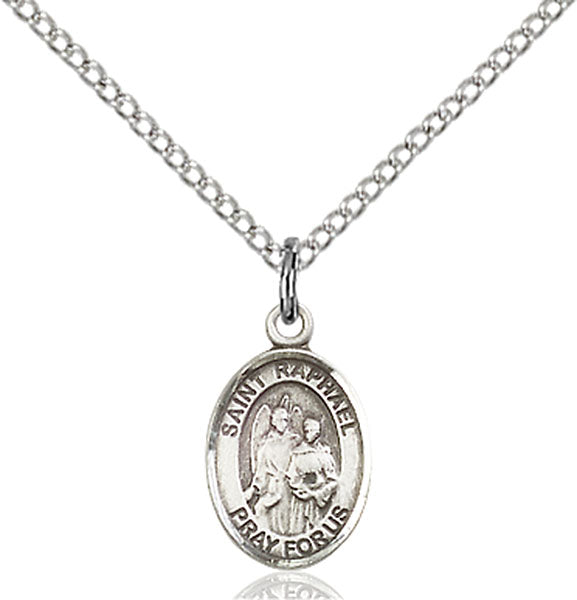 • Sterling Silver St. Raphael the Archangel Pendant, Sterling Silver Lite Curb Chain