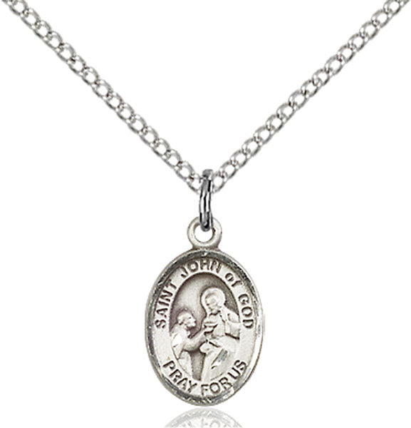 - Sterling Silver St. John of God Pendant, Sterling Silver Lite Curb Chain