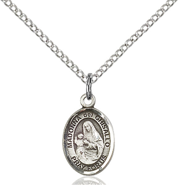 - Sterling Silver St. Madonna Del Ghisallo Pendant, Sterling Silver Lite Curb Chain
