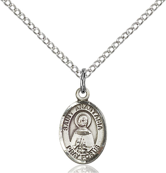 • Sterling Silver St. Anastasia Pendant, Sterling Silver Lite Curb Chain