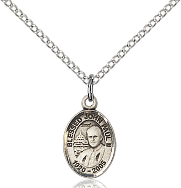 - Sterling Silver St. John Paul II Pendant, Sterling Silver Lite Curb Chain