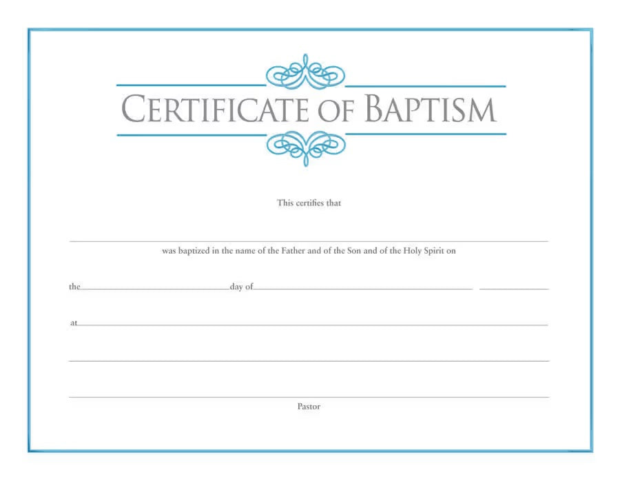 This 8 ½" x 11" Certificate of Baptism is printed on a very white, textured paper and is embellished with blue foil accents. They are sold in shrink-wrapped in packages of 6 identical certificates.