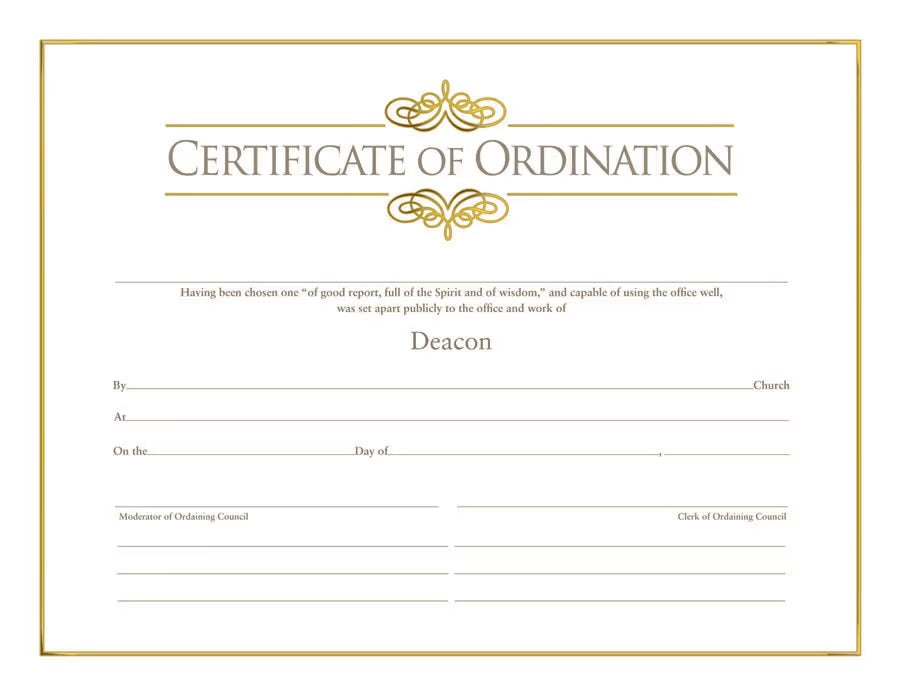 Certificate Of Ordination For Deacon Gold Embossed - CC06-08837