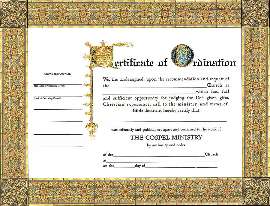 Certificate Of Ordination For Minister Flat - CC06-01692