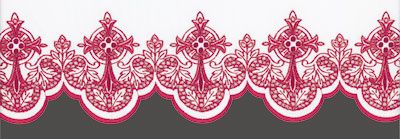 Altar Cloth made of Supperb quality 100% polyester with silk embroidery. These exquisite linens are hand scalloped and will give lasting elegance to any altar. These easy to maintain altar cloths for main and side altars are always custom-made. Available in Red, Green, Purple, Gold, White and Blue. For proper measurement please refer to sketch below. Priced per yard of Bulk altar cloth. If you would like it hemmed please specify and supply measurements.