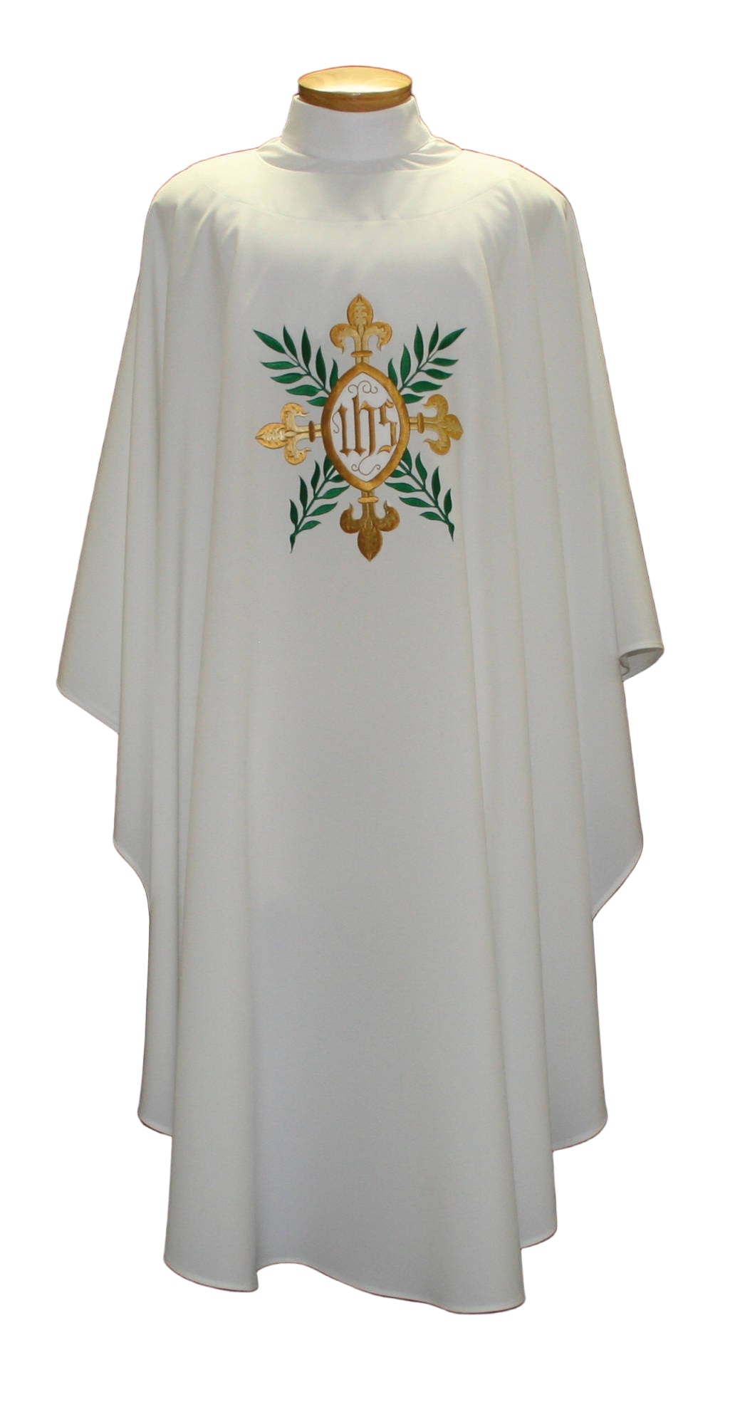 This chasuble is made of polyester with a linen weave for easy care and durability. Self-Lined stole included with each chasuble.