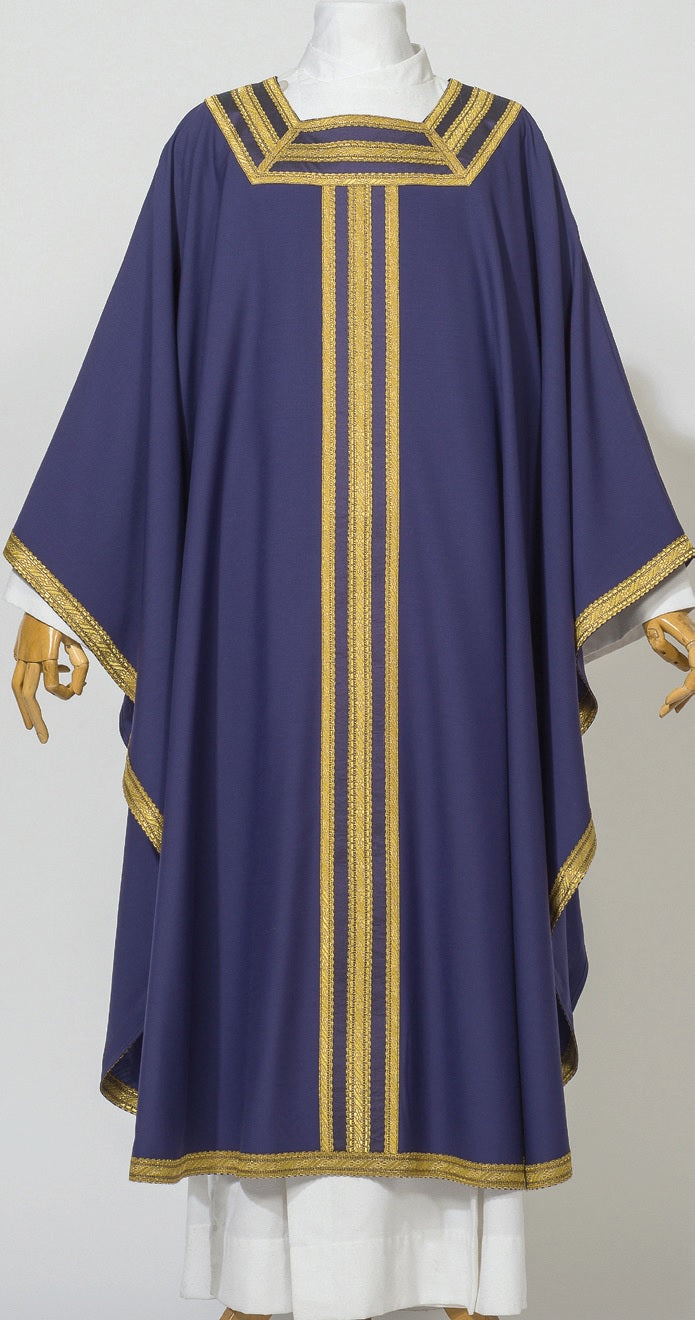 The chasuble has a gothic cut with 61 inch width and 53 inch length and includes an inner stole.