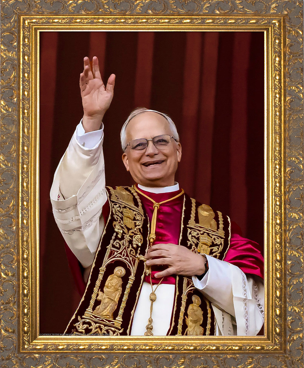 This picture comes as a canvas in a solid wood frame handcrafted in Steubenville, Ohio. Sure to be treasured for generations to come, this beautiful image of Pope Leo XIV is the perfect addition to any home!