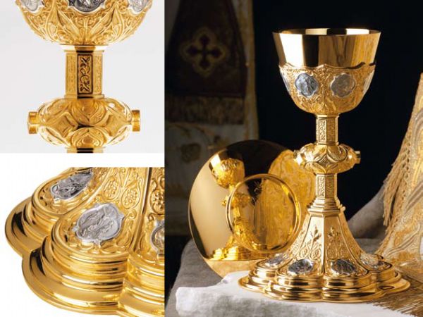 The Gothic period represents the zenith of the Western cultural process. During the 12th century the flourishing of the cities develops this style that faithfully represents the ideal of a free citizen. The artist acquires full independence. More slender and stylized forms give a more spiritual and closer vision of God. Many of the chalices in this collection have been newly designed specifically for this catalogue, reassuring once again our tribute to this great classic style.