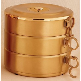 Triple Stacking Ciboria - Made in the USA. 24kt gold plated, handles swing. Sold as a set. Can be purchased by the section. Also Available in sterling silver and silver plated, please contact us for more information. Engraving is available, see below.