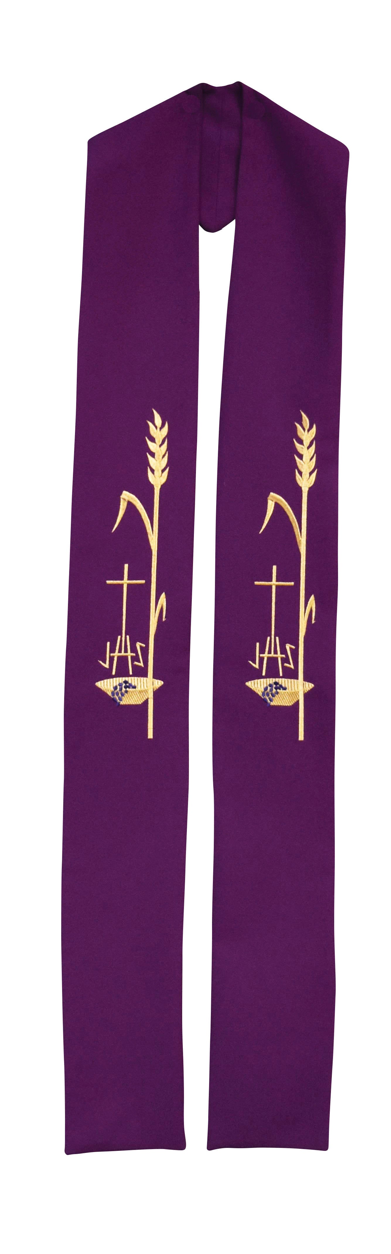 • Design: Narrower than an overlay stole; may coordinate with the chasuble and dalmatic of the set.