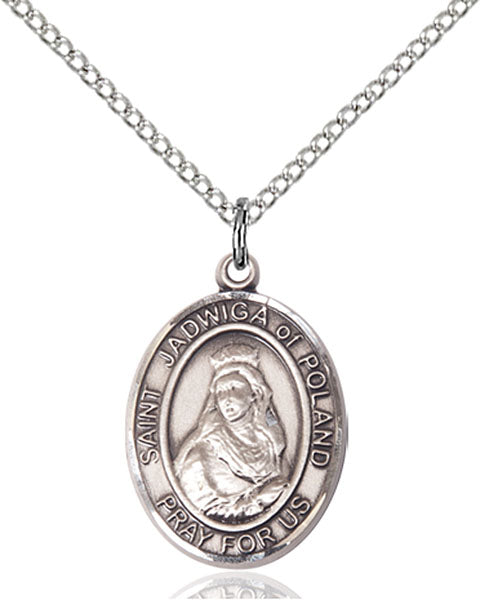 - Sterling Silver St. Jadwiga of Poland Pendant, 18 inch Sterling Silver Curb Chain