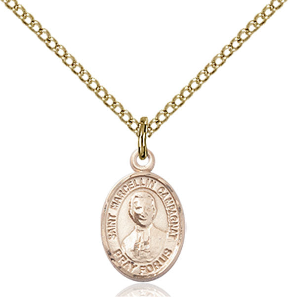 • 14kt Gold Filled St. Marcellin Champagnat Pendant, GF Lite Curb Chain