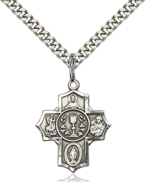 • Sterling Silver Millennium Crucifix Pendant, Stainless Silver Heavy Curb Chain
