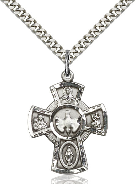 - Sterling Silver 5-Way Pendant, Stainless Silver Heavy Curb Chain