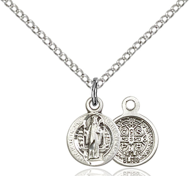 - Sterling Silver St. Benedict Pendant, Sterling Silver Lite Curb Chain