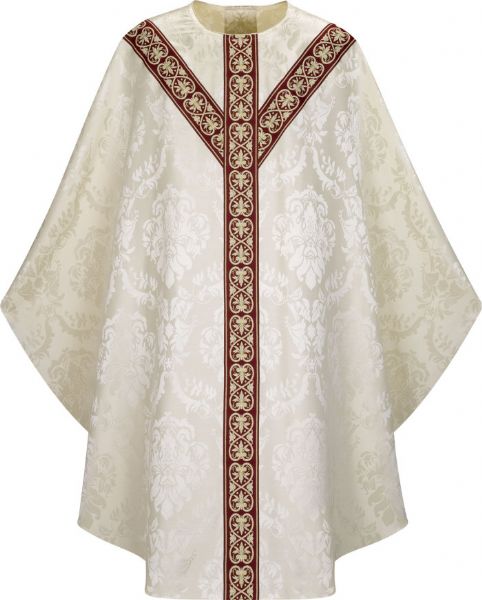 Slabbinck Gothic style chasuble with inner stole. Standard length and width, 53" by 59". Available in white, green, red, and purple - call for assistance!