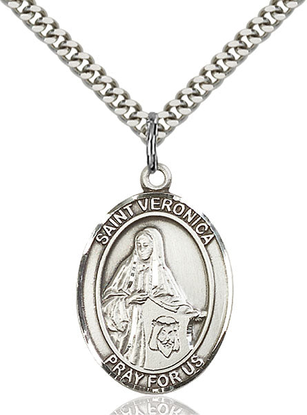 - Sterling Silver St. Veronica Pendant, Stainless Silver Heavy Curb Chain