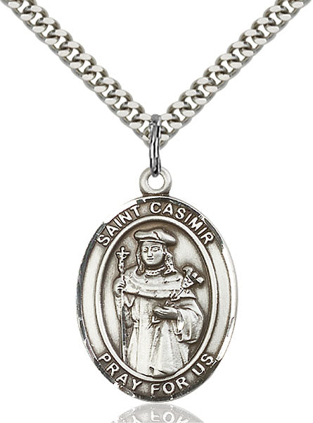 - Sterling Silver St. Casimir of Poland Pendant, Stainless Silver Heavy Curb Chain