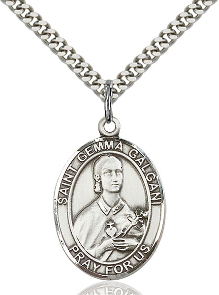• Sterling Silver St. Gemma Galgani Pendant, Stainless Silver Heavy Curb Chain