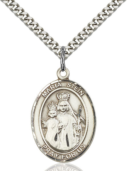 - Sterling Silver Maria Stein Pendant, Stainless Silver Heavy Curb Chain