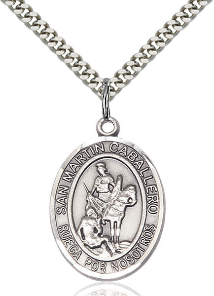 - Sterling Silver San Martin Caballero Pendant, Stainless Silver Heavy Curb Chain