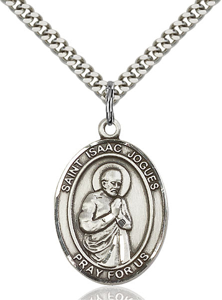 - Sterling Silver St. Isaac Jogues Pendant, Stainless Silver Heavy Curb Chain