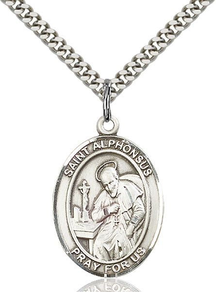 - Sterling Silver St. Alphonsus Pendant, Stainless Silver Heavy Curb Chain