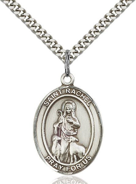 - Sterling Silver St. Rachel Pendant, Stainless Silver Heavy Curb Chain