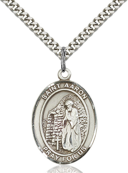 - Sterling Silver St. Aaron Pendant, Stainless Silver Heavy Curb Chain
