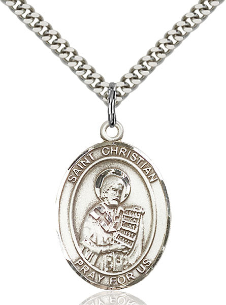 - Sterling Silver St. Christian Demosthenes Pendant, Stainless Silver Heavy Curb Chain