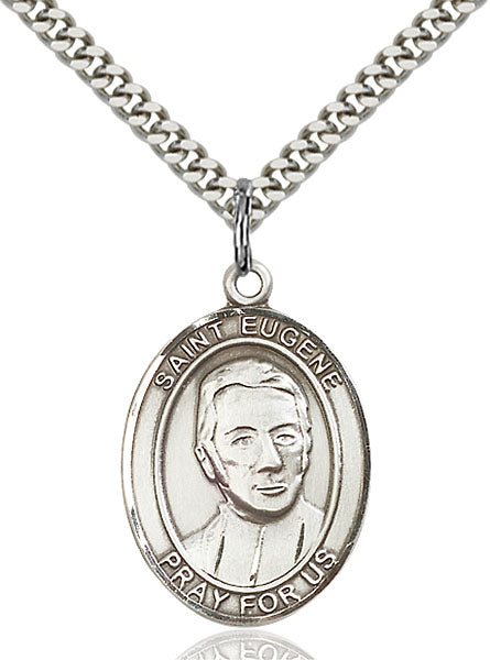 • Sterling Silver St. Eugene de Mazenod Pendant, Stainless Silver Heavy Curb Chain