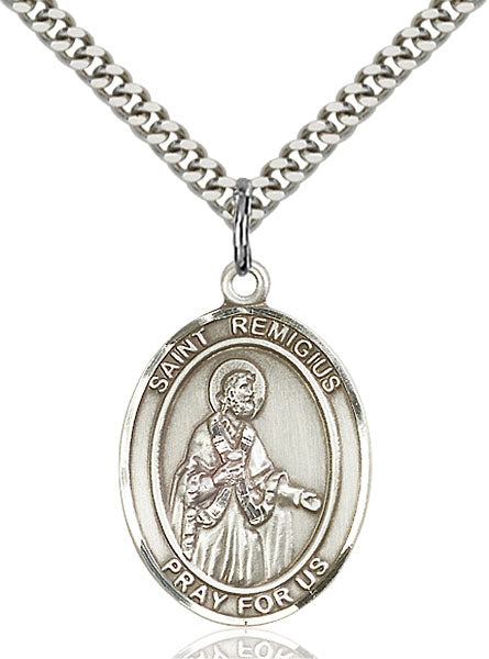 - Sterling Silver St. Remigius of Reims Pendant, Stainless Silver Heavy Curb Chain