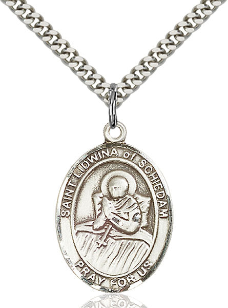 - Sterling Silver St. Lidwina of Schiedam Pendant, Stainless Silver Heavy Curb Chain